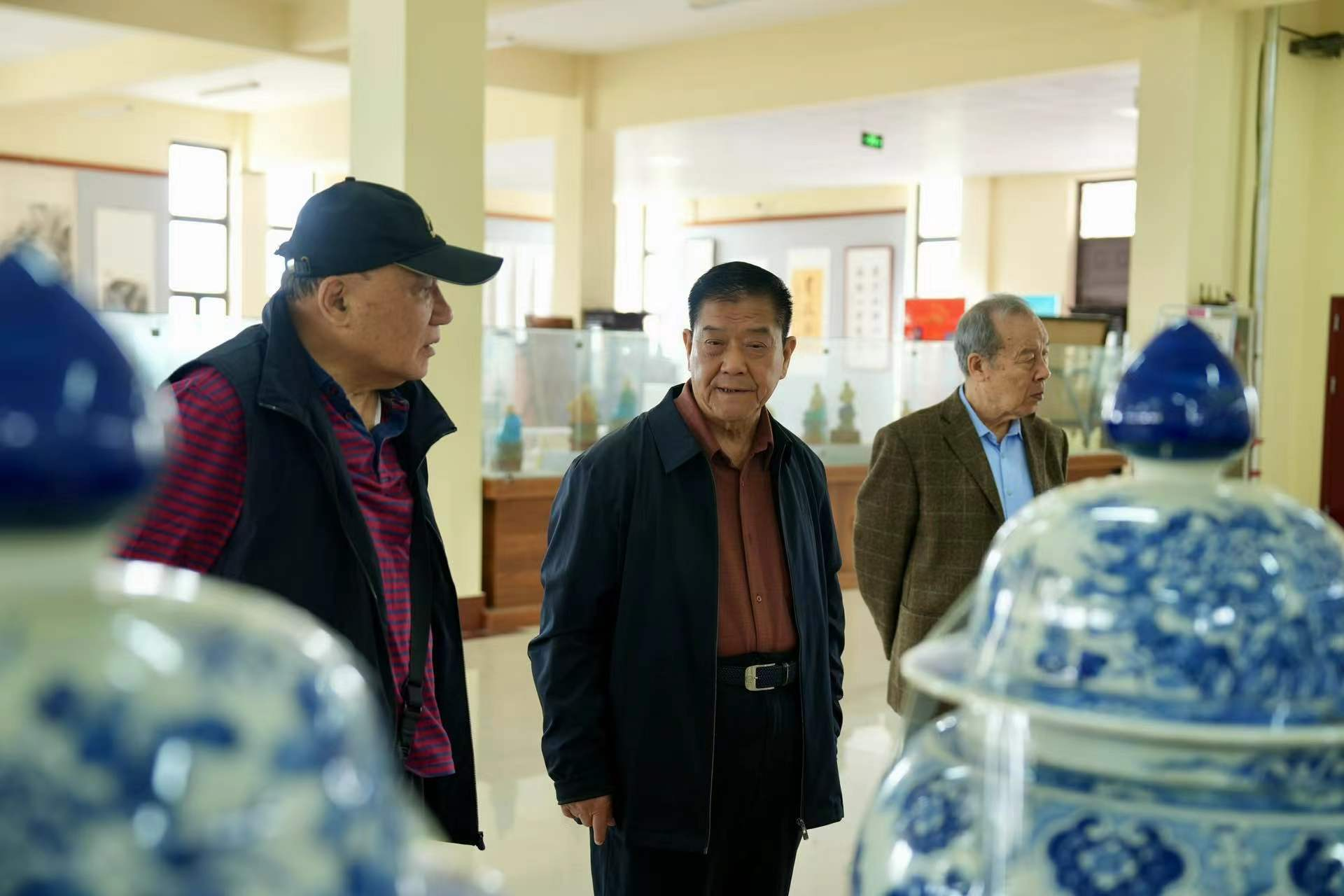 大家在欣赏各类书法、绘画、古陶、古瓷、奇石、木雕等艺术珍品后,在一楼休息处,就如何弘扬、传承好中华优秀传统文化,几位老领导作了进一步交流。