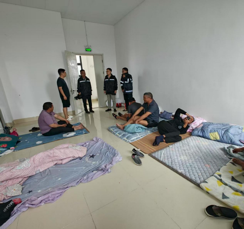 抵达安置点后,陈进诗一行首先与光伏公司负责人、施工队管理人员及安置员工亲切交流,详细询问转移安置人数、饮食保障、住宿条件、应急物资配备等情况,仔细查看安置点的通风照明、卫生防疫、消防安全等设施是否完善。“大家在这里住得还习惯吗?饭菜供应跟得上吗?有任何需求都可以随时提!”陈进诗反复叮嘱安置员工,要严格遵守安置点管理要求,密切关注台风动态和镇政府发布的预警信息,切勿擅自返回施工区域,确保自身安全。