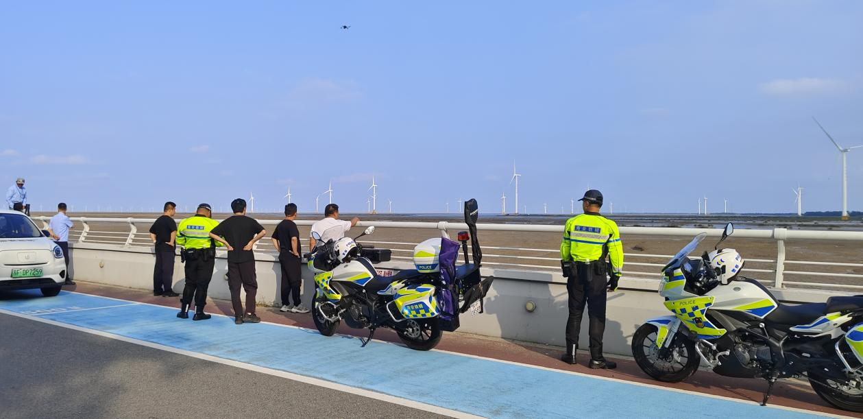 “双节”期间,预估不少群众会到海边聚集玩耍,可能出现的私自下海游玩、垂钓、捕鱼等危险行为,滨海新区派出所制定应急处突预案,每天安排铁骑、警车在海堤边进行巡逻,安排飞手驾驶无人机对海堤滩涂进行巡查,对前来游玩的群众进行安全提醒教育,及时发现风险隐患、排查险情,防止发生落水危险。