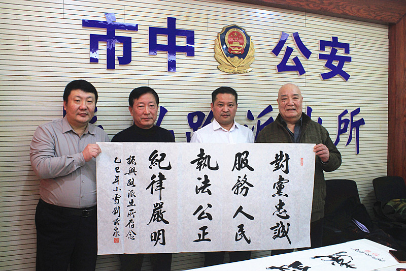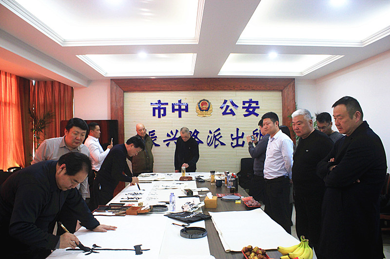 此次活动的促成,离不开文化桥梁的精心搭建。受新华社客户端中国名牌观澜栏目市场调研主任、中国新时代党建新闻网社长助理、党建头条客户端区域主任、中国数字电视CCTV《法制与经济》栏目群联部主任王海涛的诚挚邀请,多位艺术造诣深厚的书画名家走进了这片承载着忠诚与担当的警营。他们中有著名演员马子俊,有因其画作“五岳独尊”成为国家名片——第五套人民币五元面值图案而广为人知的中国美术家协会会员李叔平,有以独特左书艺术闻名的中国书画界联合会会员、左书艺术名家史双柱,还有翰墨精深、享有盛誉的中国书法家协会会员、国家一级美术师、中央美院客座教授刘啸泉。他们的到来,为平日严肃紧张的警营注入了浓郁的人文气息与艺术活力。市中区公安分局振兴路派出所所长李小鹏全程陪同,对艺术家们的到来表示热烈欢迎,并期待此次活动能进一步滋养警心、凝聚警力。