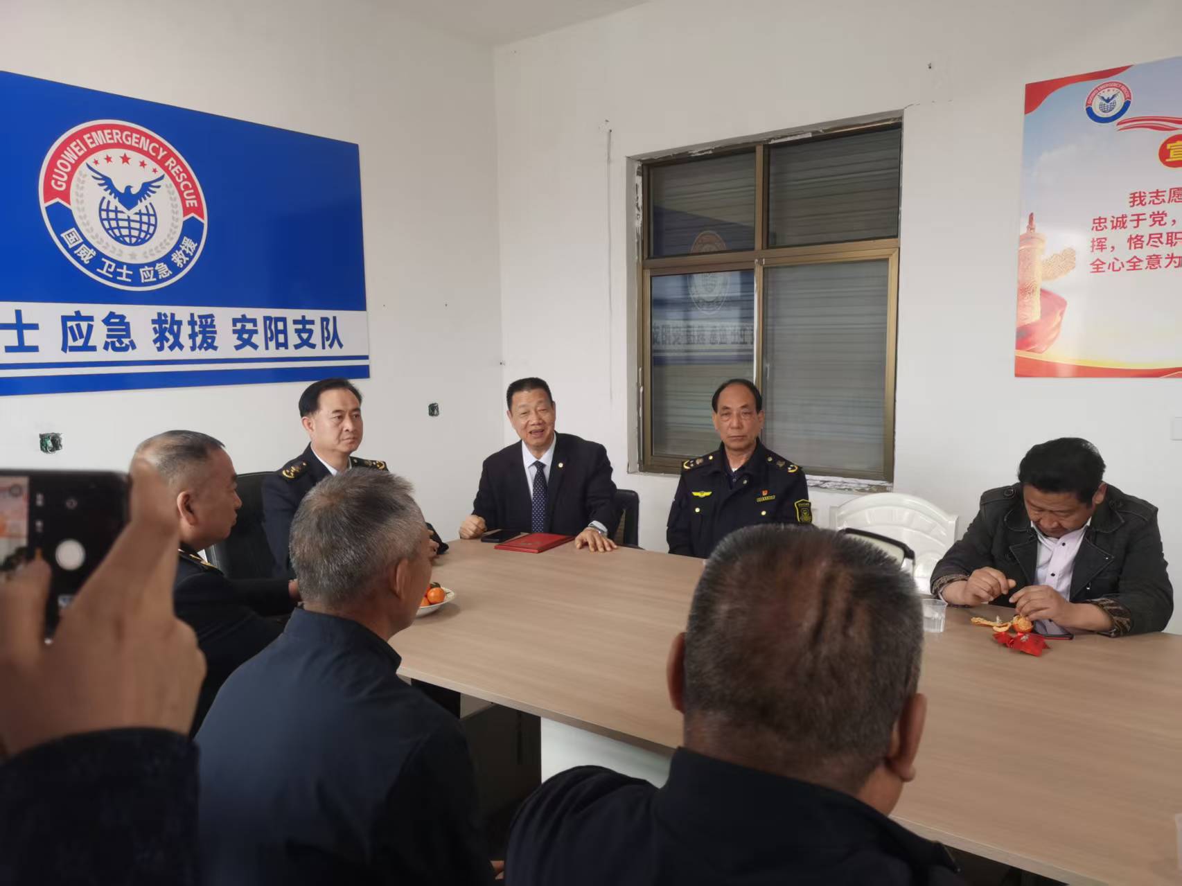 成立大会前,总部及河南总队领导与安阳支队相关负责人开展座谈交流,就队伍建设、日常管理、应急响应等工作进行深入研讨,为支队后续发展明确方向、夯实基础。