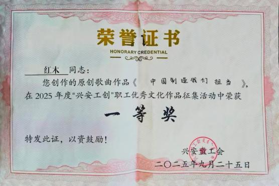 红木的音乐创作,始终扎根生活、贴近时代,用旋律记录生活、歌颂美好。她的作品从不脱离现实,《中国制造我们担当》唱响时代担当与民族自豪,《乡村新时代》描绘乡村振兴的美好画卷,每一首作品都饱含着对时代的敬意、对生活的热爱。