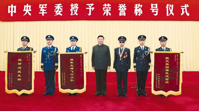 习近平向获得荣誉称号的个人颁授奖章和证书 向获得荣誉称号的单位颁授奖旗2019年08月01日04:51 来源:人民网-人民日报分享到: 7月31日,中央军委授予荣誉称号仪式在北京隆重举行。中央军委主席习近平向1名获得荣誉称号的个人颁授奖…