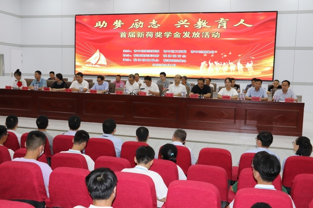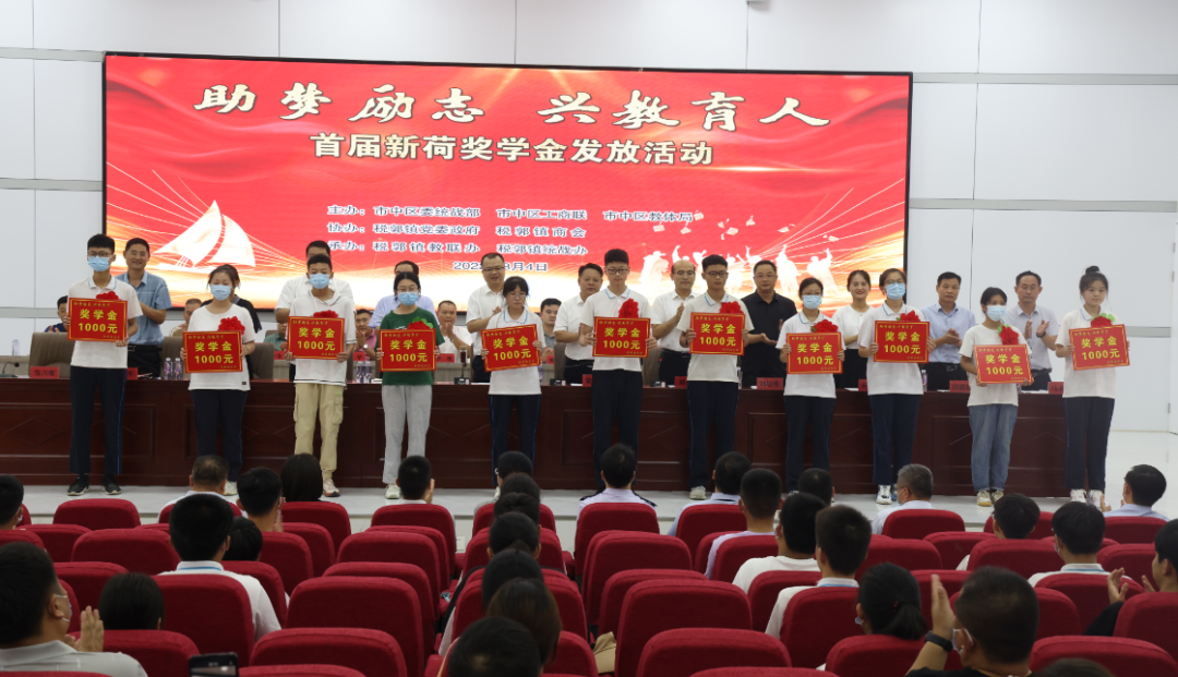 8月4日,由枣庄市市中区委统战部、市中区工商联、市中区教体局主办,市中区税郭镇党委政府、税郭镇商会协办,税郭镇教联办、统战办承办的税郭镇“助梦励志、兴教育人”首届新荷奖学金发放活动在枣庄市第二十六中学举行。市中区政协副主席、工商联主席张兵,市中区统战部副部长、区工商联党组书记、常务副主席侯宗成,税郭镇党委书记、四级调研员梁勇,市中区教体局党组成员、副局长董磊出席本次活动。税郭镇商会全体会员单位及税郭镇辖区各中小学校长、骨干教师代表、考取重点高中学生、部分家长代表参加。税郭镇党委副书记、镇长刘昊主持活动。