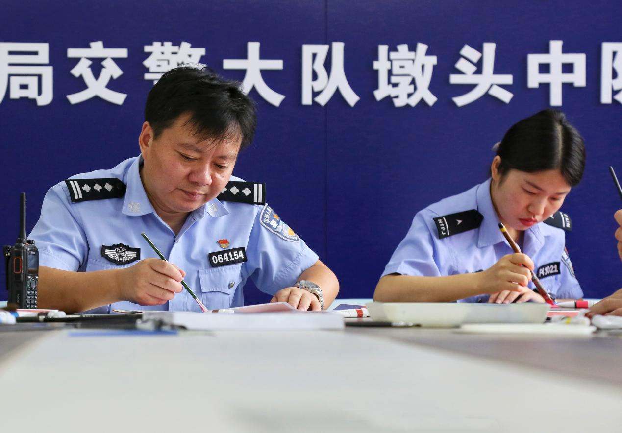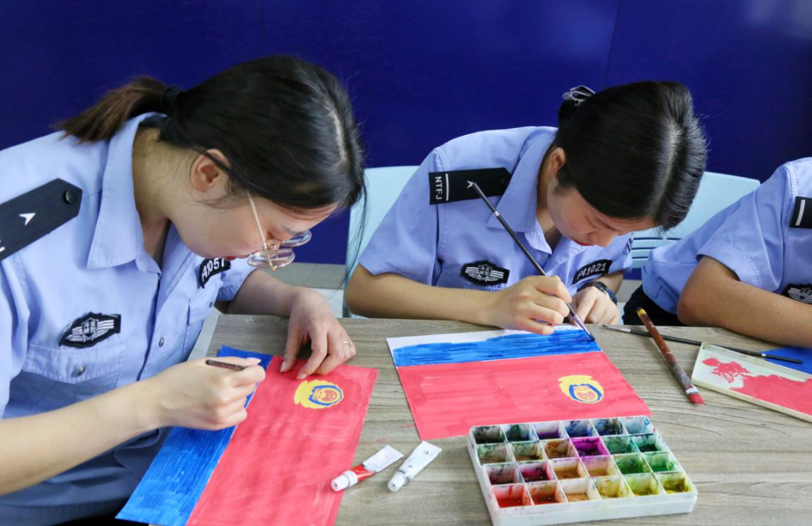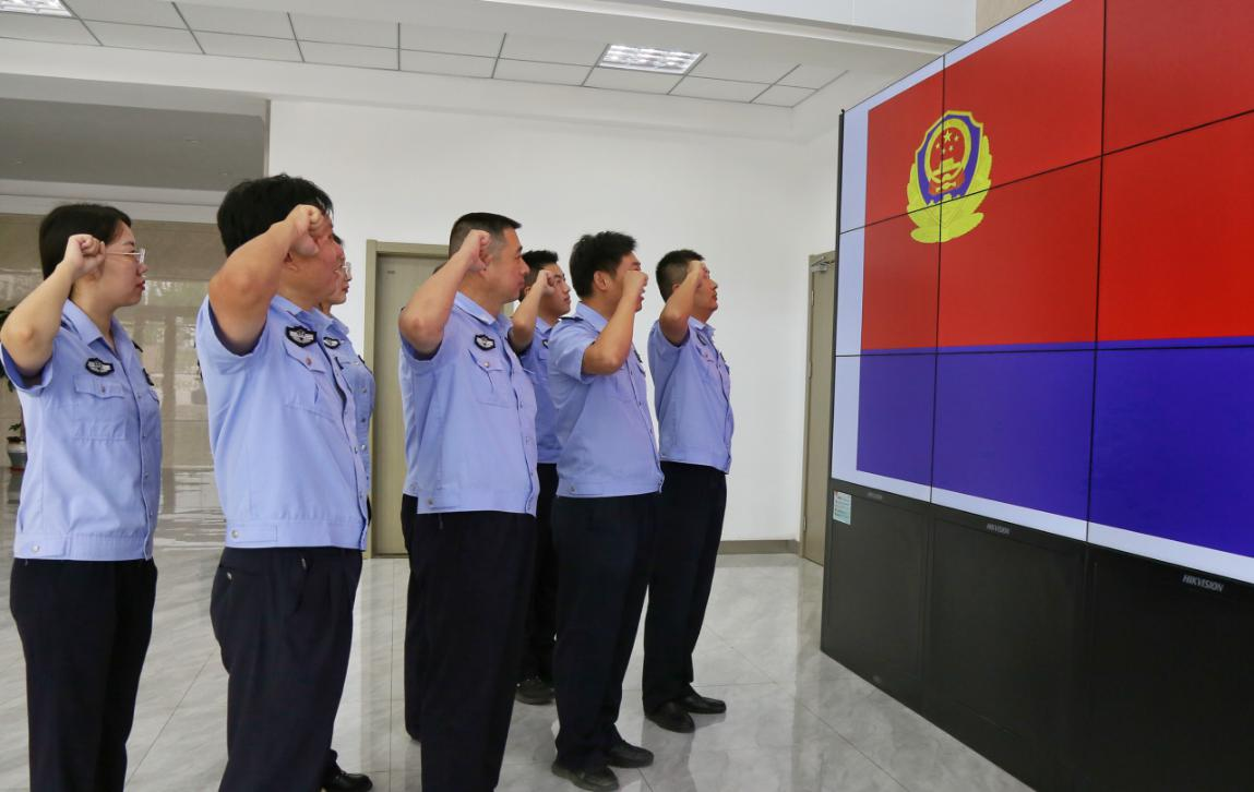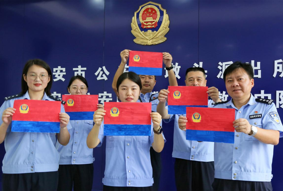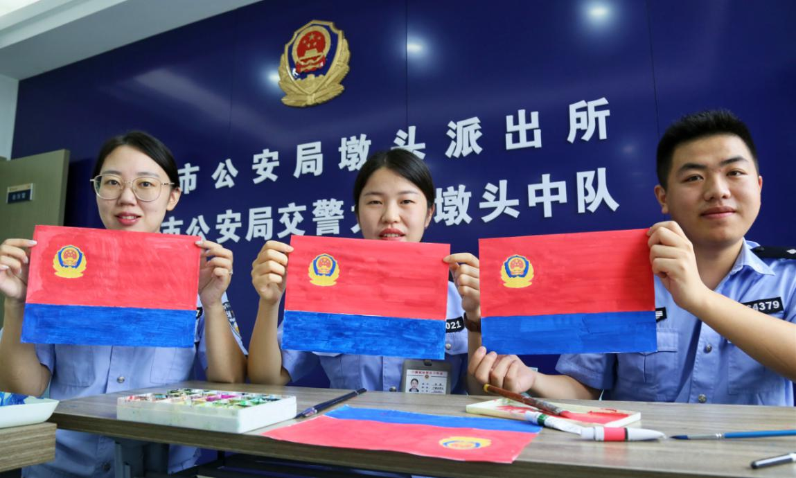 中国中央数字电视《法制与经济》栏目山东讯(王海涛 刘娟 图文:周强 撉萱)报道:日前,在习近平总书记向中国人民警察队伍授旗并致训词两周年之际,中共江苏省海安市公安局墩头公安党支部开展“致敬警旗·重温训词”专题活动,墩头派出所、交警中队民辅警手绘警旗、以“画”致敬,重温总书记重要训词,宣誓牢记总书记的殷殷嘱托,忠实践行“四句话、十六字”总要求,立足岗位、知行合一,奋力拼搏、尽心履职,防风险、保安全、护稳定,增强辖区群众的安全感、满意度,以优异成绩迎接二十大的胜利召开。
