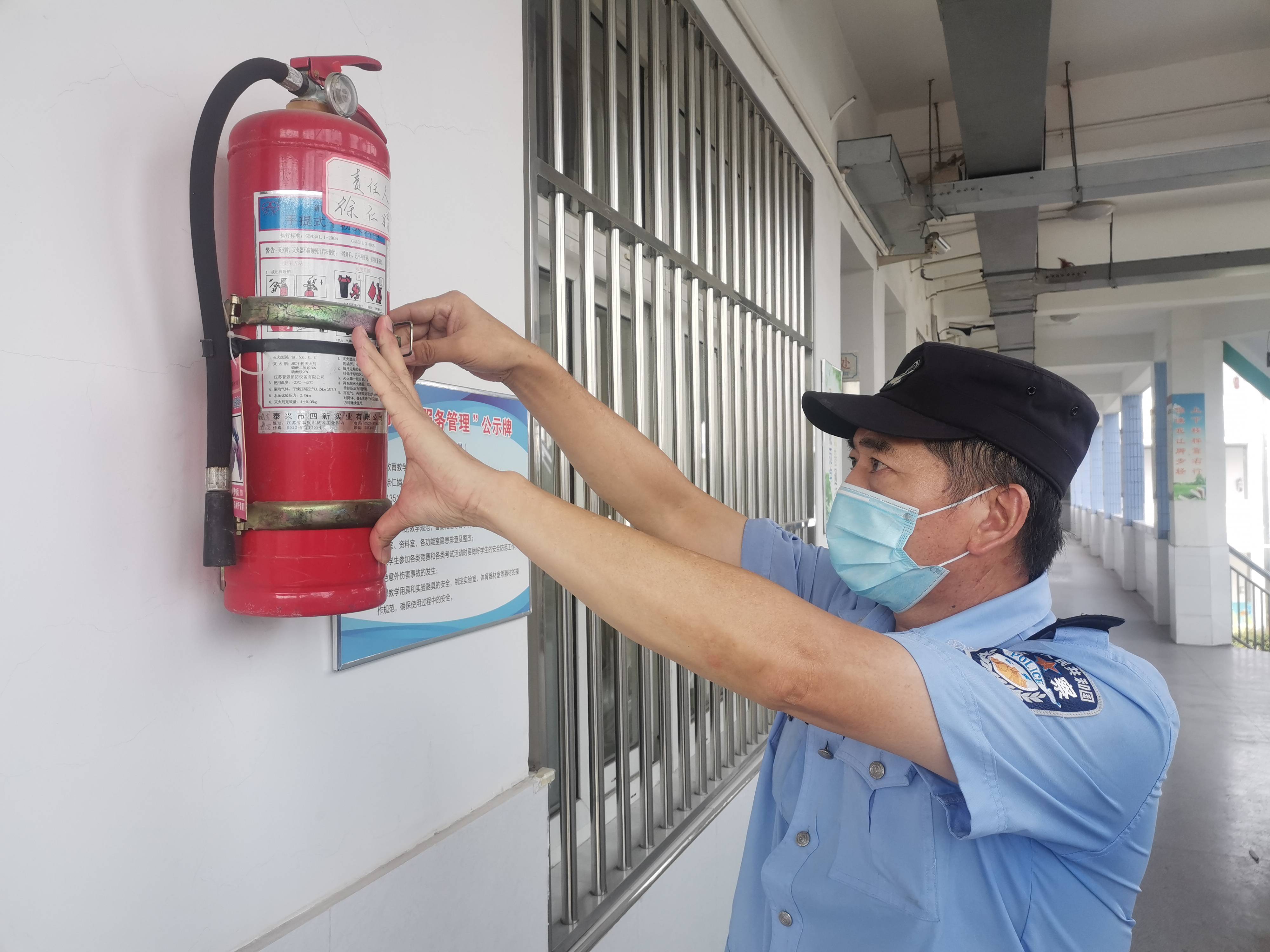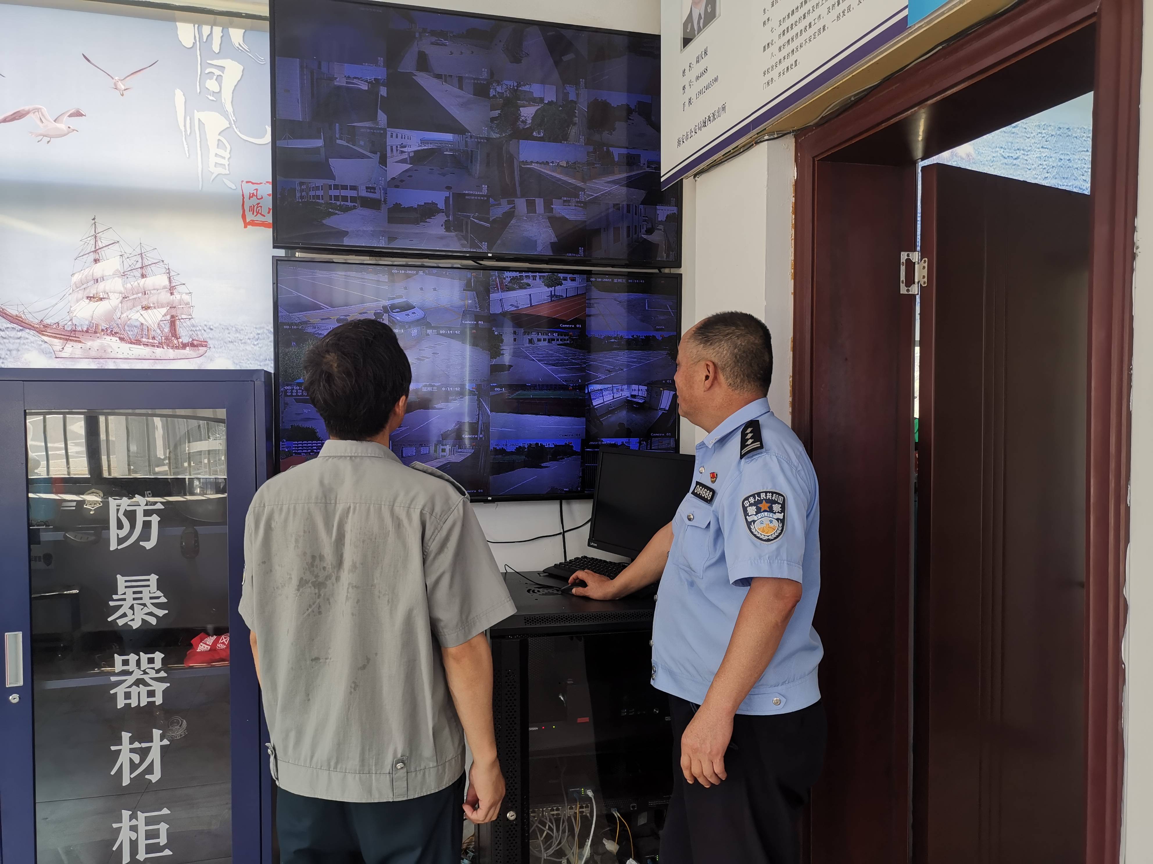 民警按照校园安全管理工作要求对学校的内部安保力量、疫情防控措施、一键式报警装置、安全防护器材配备使用、监控设施安装使用、消防设施配备等方面进行了全面细致的检查。
