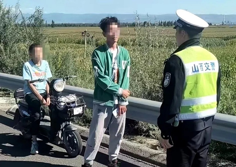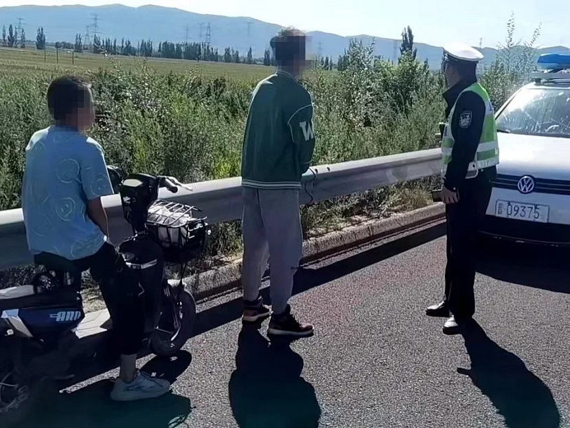交警联系到三人家长后,对其进行了交通安全教育,并责令家长将孩子带回后加以管教,切实履行监管责任。 9月1日下午,高速交警二支队十大队民警巡逻至朔州绕城高速张蔡庄互通处时,发现两名男孩正推着电动车在应急车道逆行,民警立即上前将两人拦停。