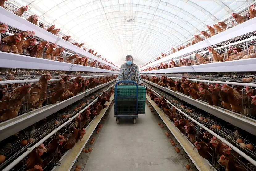 于是2021年建设有蛋鸡鸡舍、饲料加工车间、鸡蛋分级包装车间、雏鸡培育车间、检疫室等2个棚正式投入运行。合作社采用标准化、自动化、智能化的养殖模式,融入现代管理理念,实施高效蛋鸡养殖,引进蛋鸡专业化生产设备,采用智能化管理系统,实现自动投料、自动控温、自动通风、自动收集鸡蛋、自动清粪的生态化、无污染养殖模式,并聘请养鸡专家提供技术管理,为养殖场的标准化生产奠定了基础。一年多时间,养殖场走出了一条现代化养殖、品牌化销售的发展路径,既增加了集体收入,又带动了村里剩余劳动力就业,“咯咯哒”的蛋鸡带来“棒棒哒”的效益。