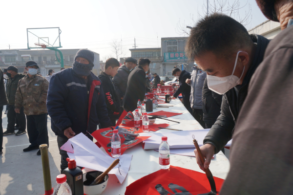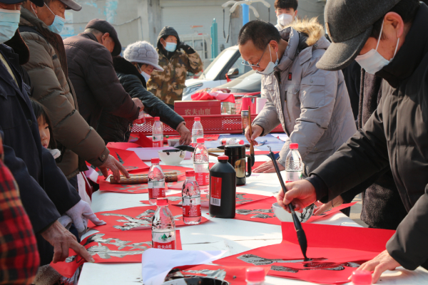 活动现场,书法家们现场挥毫泼墨为村民们免费写春联、送“福字”。一幅幅散发着墨香与年味的大红对联与“福”字展现在大家面前,村民们纷纷挑选春联,喜气洋洋,为迎新春增添了浓浓的喜庆氛围。