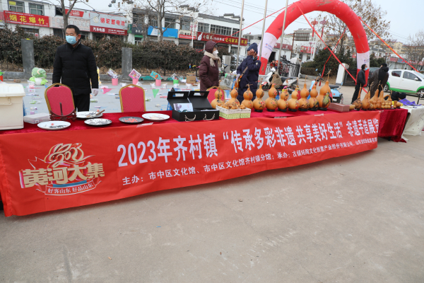 中国数字电视《社会与法》栏目山东讯(王海涛 孔浩 郭颖)1月15日,由山东省枣庄市市中区文化馆、市中区文化馆齐村镇分馆主办,古镇炻陶文化创意产业股份有限公司、山东途歌新能源有限公司承办的“黄河大集”2023年齐村镇“传承多彩非遗 共享美好生活”非遗手造展览活动,在枣庄市市中区齐村镇举行。市民们看非遗、选年货,在浓浓的年味中,迎接兔年新春佳节的到来。