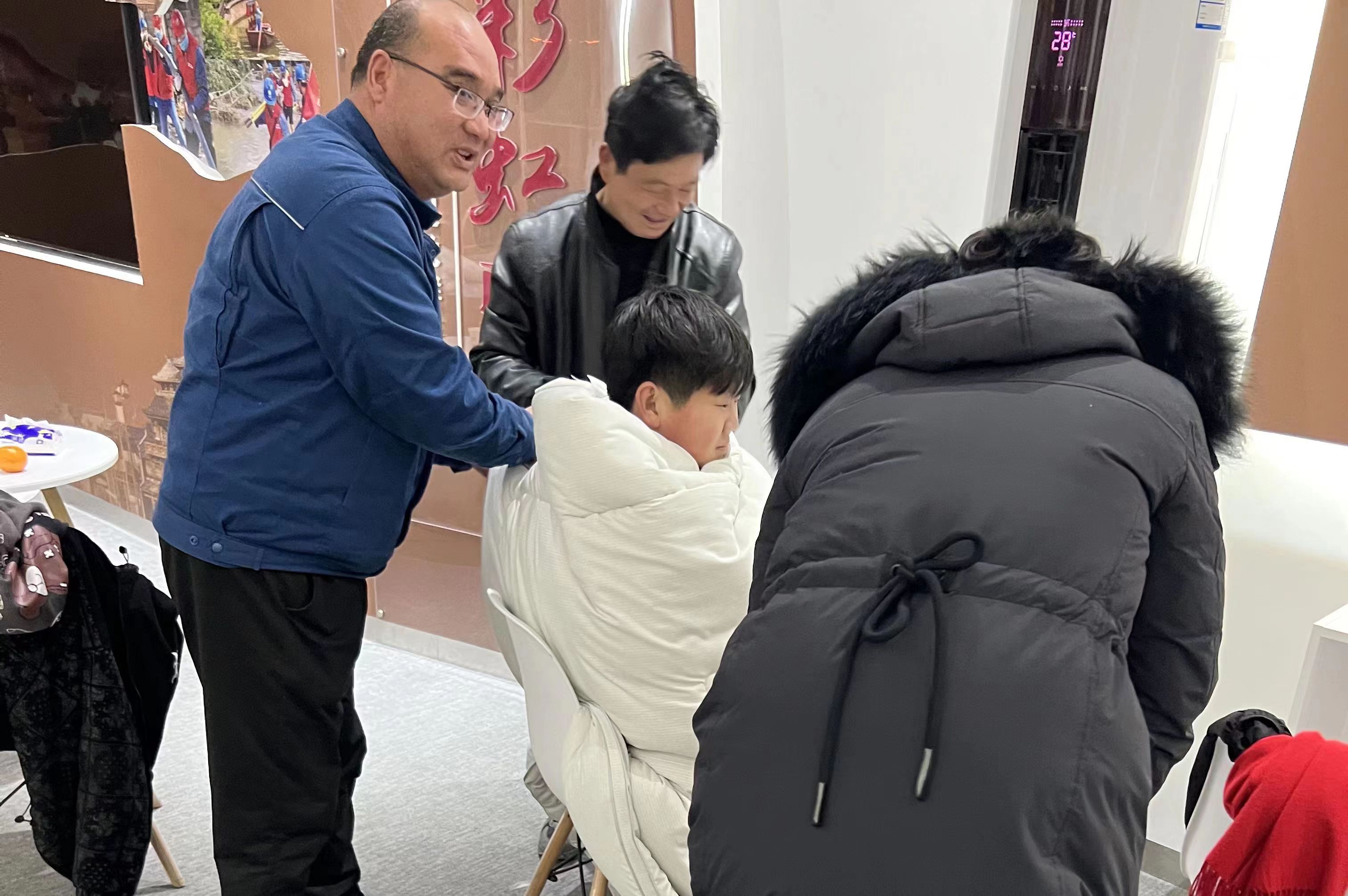 看着浑身湿透的小李,刘平义和同事们抱起他便冲进了彩虹驿站。刘平义帮小李脱掉湿透的衣服后,拿出自己的棉袄和值班用的被子包住小李,为他取暖。一旁的付女士看到这一幕后感动得落了泪,连声向几位队员致谢,并掏出500元现金表达感激之情,但被刘平义和同事们婉言谢绝了。
