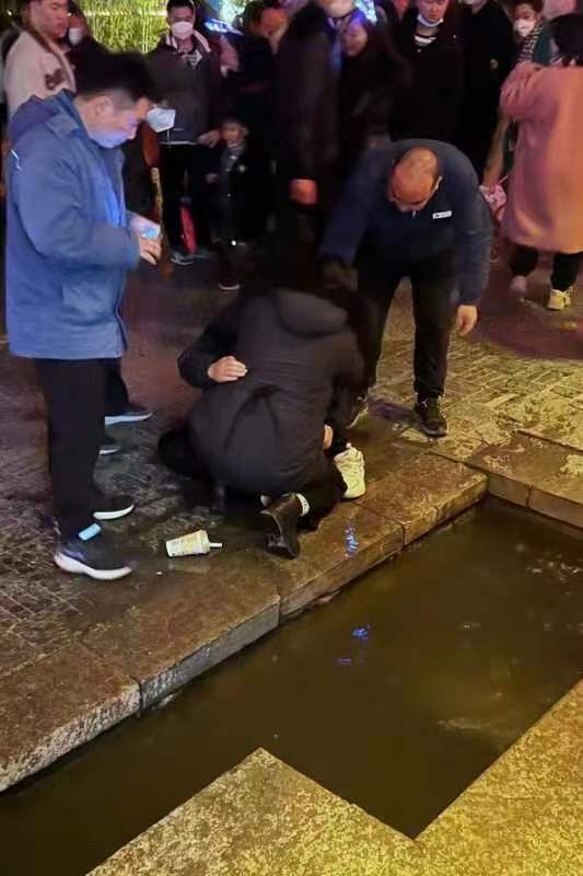 2月5日元宵节当晚,山东省枣庄市台儿庄古城内人山人海,挤满了游客,付女士和朋友一起带着14岁的儿子小李也来游古城看花灯。当他们来到大衙门街西首、台儿庄供电中心彩虹驿站南门的时候,由于人潮涌动,玩得正嗨的小李被挤得一个趔趄,脚下一滑,直接摔倒滚进了古城流动的水渠里。