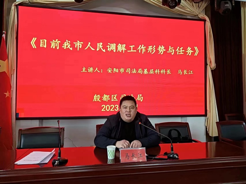 殷都区司法局党组书记、局长郝青峰作了动员讲话,他指出,时代赋予人民调解工作新的使命、新的任务,人民调解员必须进一步增长才干、积极作为,为满足群众更高水平、更高质量的调解服务需求练就过硬本领。