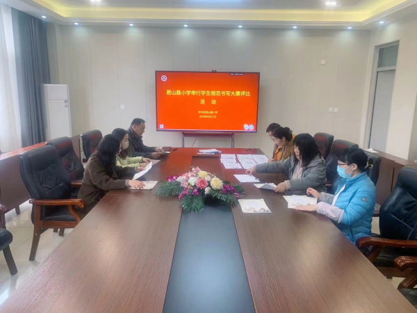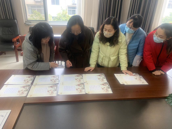 书写比赛后,评委老师对学生作品进行评选。先从汉字的笔画特点、结构布局等方面仔细斟酌,再参考纸张整洁程度、修改痕迹等,评选出优秀作品。