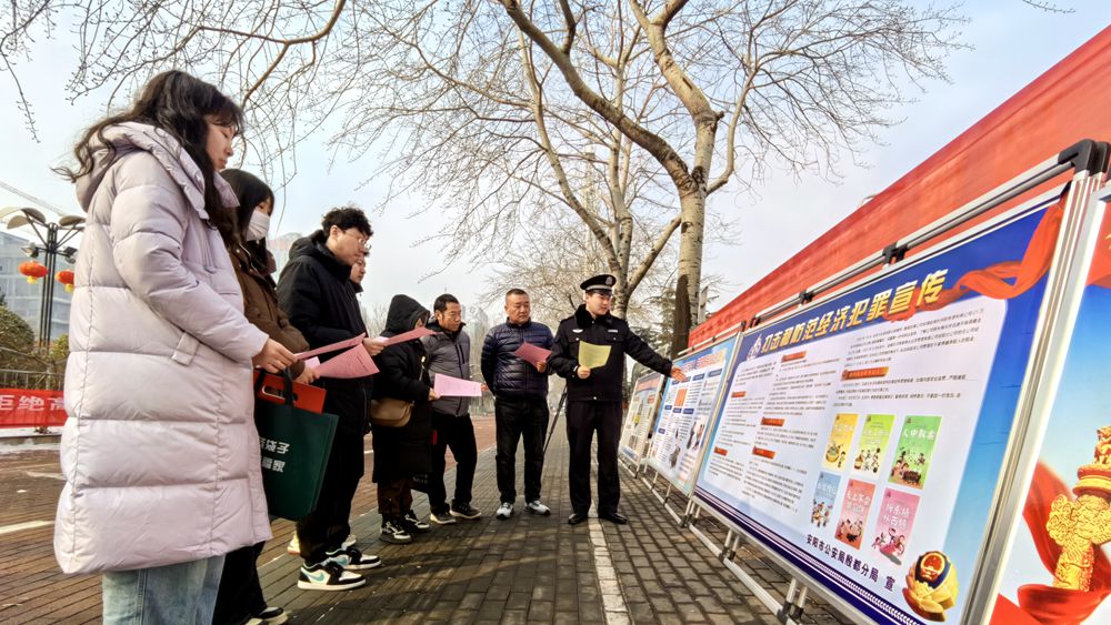 中国数字电视《社会与法》栏目 河南安阳讯:春节临近,各类新型非法集资、金融诈骗犯罪行为高发。为进一步从源头防范化解非法集资风险,保护群众切实利益,2月5日,殷都分局经侦大队联合清风街道办事处和辖区五家银行开展了“守护钱袋子,过好幸福年”为主题的防范宣传活动。