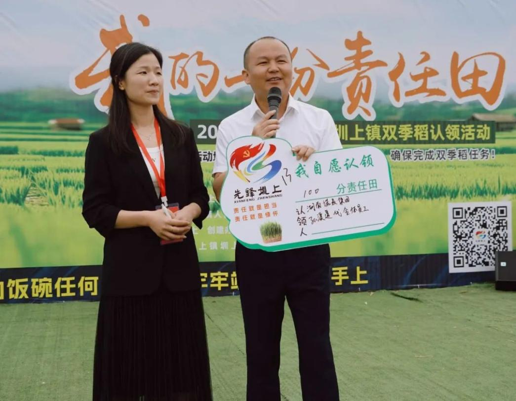 镇党委副书记、镇长陈杰介绍,认领者需出资300元,认购“一分田”,由工作组代为管理田地,认领者可以参与到认购责任田的农耕生产体验活动中来,水稻成熟后可得到60斤大米(早稻米和晚稻米各30斤),并颁发“圳上好人”的荣誉证书。认领的份额不限,并鼓励认领者每年在帮扶户爱心消费不少于600元。近年来,全镇撂荒地整治持续推进,今年计划实现双季稻面积达到1万亩,全镇粮食生产总量达到3000万斤以上。