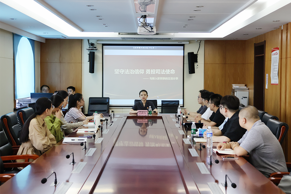 刑事审判庭庭长全荃以《坚守法治信仰,勇担司法使命》为题,着重从加强理论学习、提高自身专业素养、培养良好的职业道德和职业操守、提高自身能力素质等方面与新入职干警交流分享。