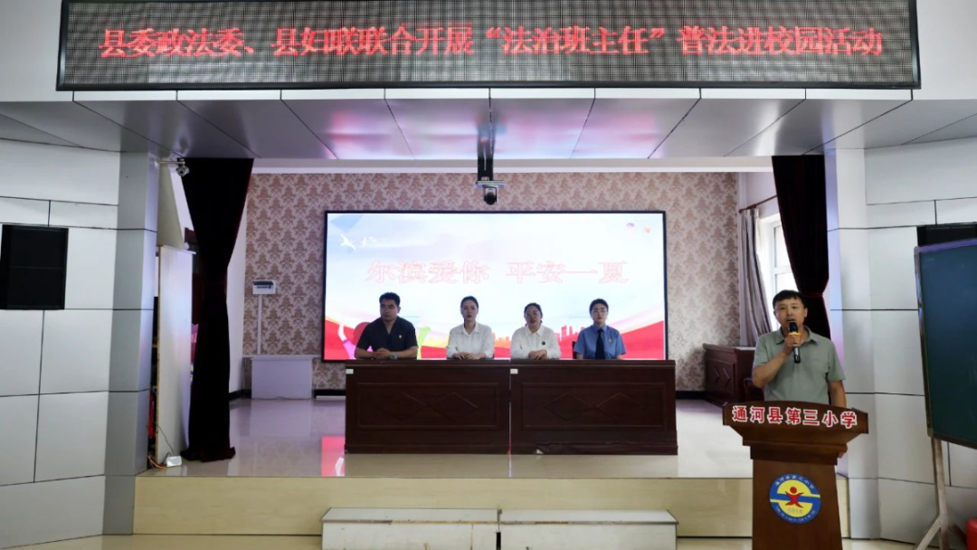 联合县委政法委、县妇联、县检察院走进通河县第三小学校,开展暑期安全法治教育活动。法官化身“安全导师”,围绕防溺水、交通安全、消防安全、饮食安全四大主题,结合青少年暑期生活场景,深入剖析河边野泳、马路上追逐打闹等易被忽视的风险点,通过情景模拟、互动问答等形式,将《未成年人保护法》《预防未成年人犯罪法》等法律条文转化为生活常识,引导学生树立“安全无小事”意识,为快乐暑假筑牢安全防线。