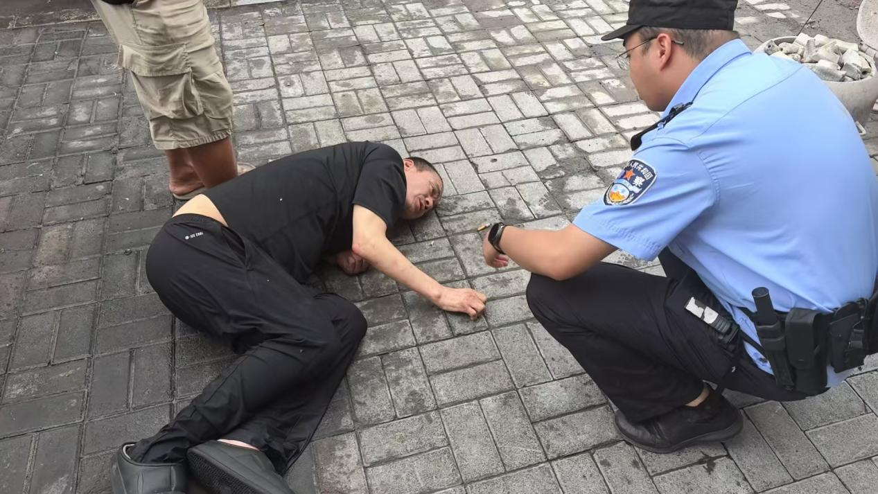 “师傅,能听到我说话吗?有没有哪里不舒服?” 范春旭轻拍男子肩膀反复呼喊,男子才含糊回应几句。确认其无生命危险后,民警小心将男子扶至路边阴凉处,递上矿泉水帮其缓解醉酒不适,随后通过男子随身携带的手机通讯录,成功联系到其家属。
