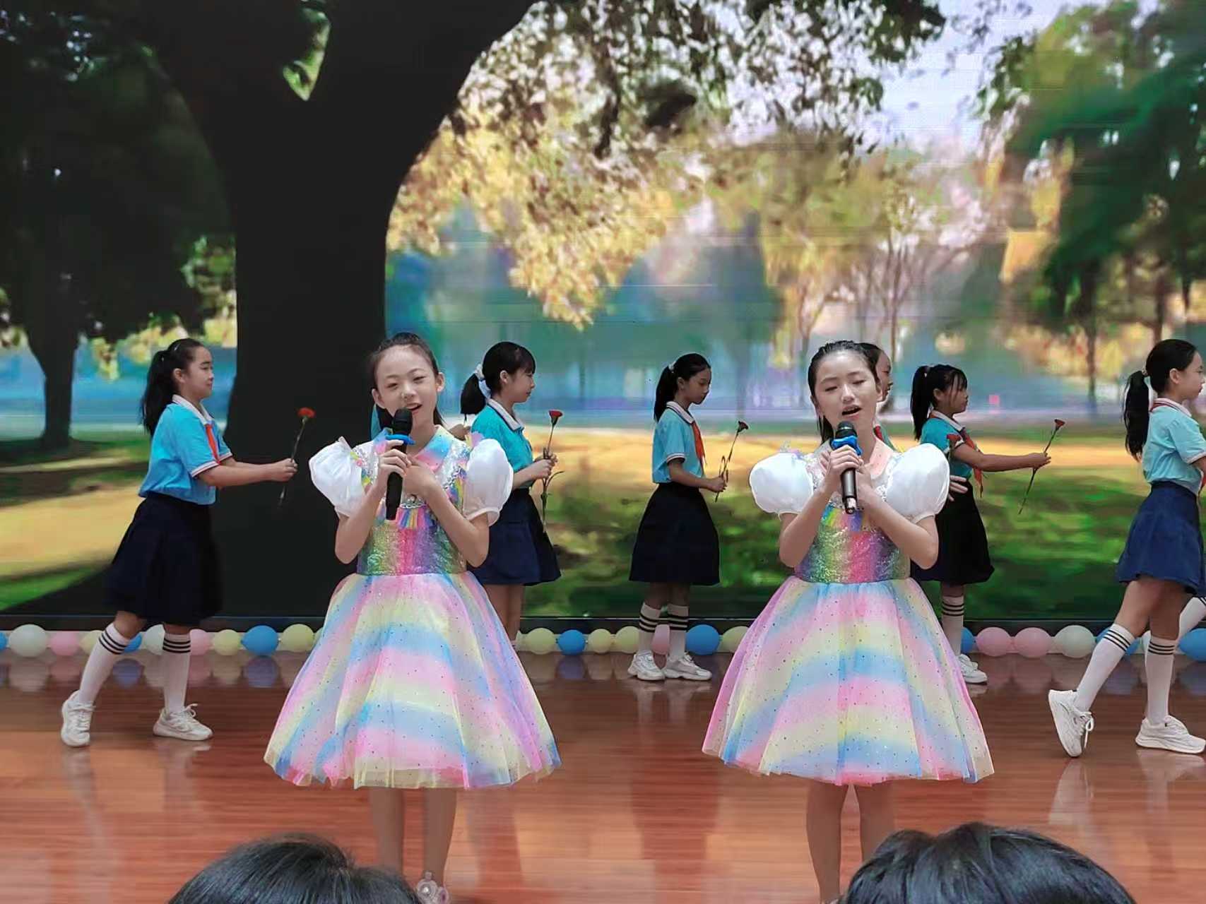 在紧张而期待的比赛间隙,孩子们用一场精彩纷呈的歌舞表演《每当我走过老师窗前》为老师们献上了最纯真的祝福。同学们的表演如同春日暖阳,照亮了每一位教师的心田。献给老师们的一束束鲜花,不仅是对老师们辛勤付出的感恩回馈,更是孩子们纯真心灵的真诚写照。