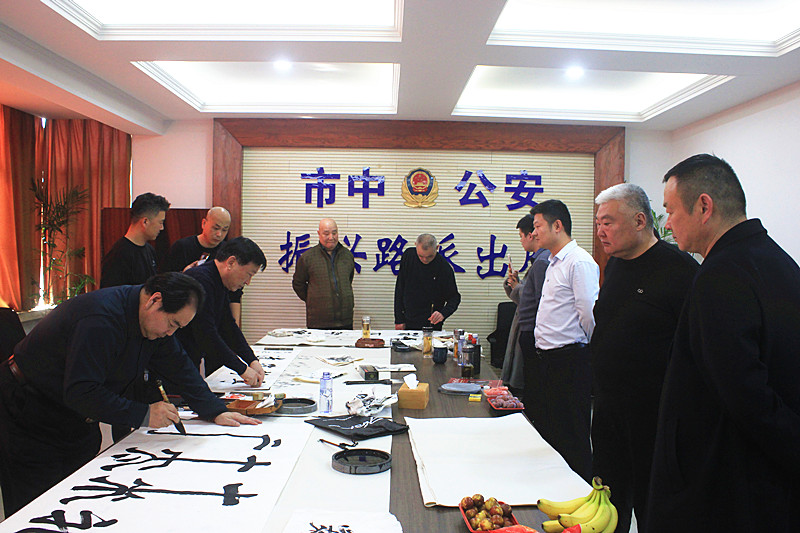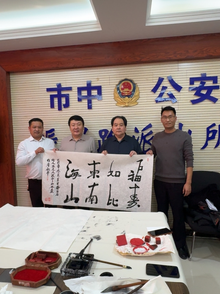 此次活动的促成,离不开文化桥梁的精心搭建。受新华社客户端中国名牌观澜栏目市场调研主任、中国新时代党建新闻网社长助理、党建头条客户端区域主任、中国数字电视CCTV《法制与经济》栏目群联部主任王海涛的诚挚邀请,多位艺术造诣深厚的书画名家走进了这片承载着忠诚与担当的警营。他们中有著名演员马子俊,有因其画作“五岳独尊”成为国家名片——第五套人民币五元面值图案而广为人知的中国美术家协会会员李叔平,有以独特左书艺术闻名的中国书画界联合会会员、左书艺术名家史双柱,还有翰墨精深、享有盛誉的中国书法家协会会员、国家一级美术师、中央美院客座教授刘啸泉。他们的到来,为平日严肃紧张的警营注入了浓郁的人文气息与艺术活力。市中区公安分局振兴路派出所所长李小鹏全程陪同,对艺术家们的到来表示热烈欢迎,并期待此次活动能进一步滋养警心、凝聚警力。